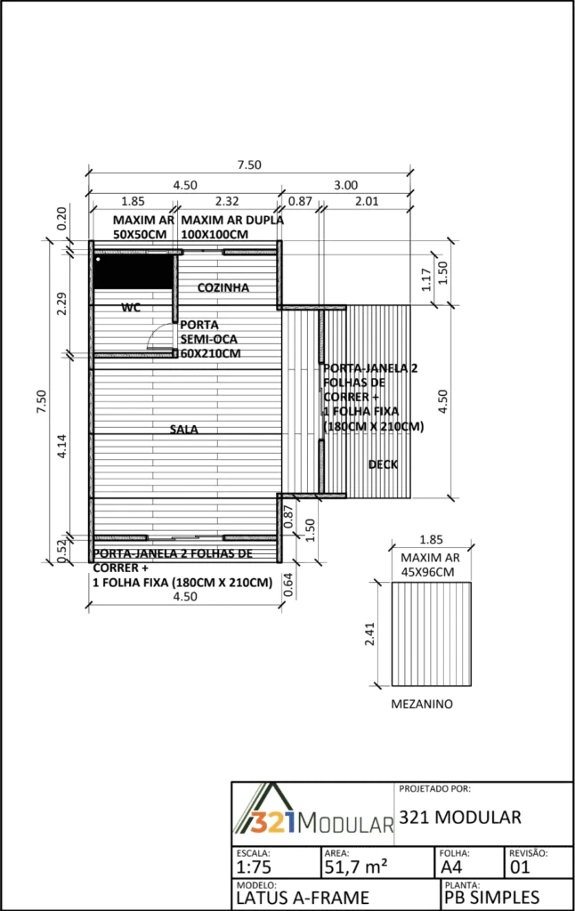O Chalé Modelo 06A foi concebido para quem busca ir além do convencional, entregando uma experiência arquitetônica diferenciada e altamente valorizada. Com 51,7m² de área total, o projeto combina amplitude, design e integração total entre os ambientes internos e externos.