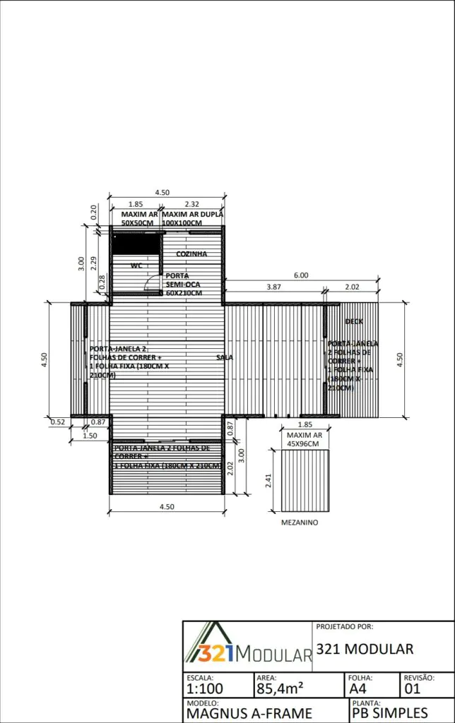 O Chalé Modelo 08A representa o ponto mais alto da linha, um projeto pensado para quem busca o máximo em conforto, integração e sofisticação. Com 85,4m² de área total, este modelo entrega uma experiência completa, onde arquitetura e bem-estar se encontram em equilíbrio.