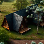 A estrutura é executada em madeira de pinus autoclavada e selecionada, com tratamento industrial contra cupins e apodrecimento, assegurando durabilidade e resistência. As paredes são duplas, com todas as instalações embutidas, o que garante acabamento refinado e praticidade. O banheiro recebe revestimento em laminado de fibra de vidro, de alta durabilidade e fácil manutenção. A cobertura é composta por telhas trapezoidais em aluzinco com pintura eletrostática e isolamento em EPS de 32mm, oferecendo excelente conforto térmico e acústico. Já as esquadrias em eucalipto maciço reforçam a sofisticação e o caráter sustentável do projeto.