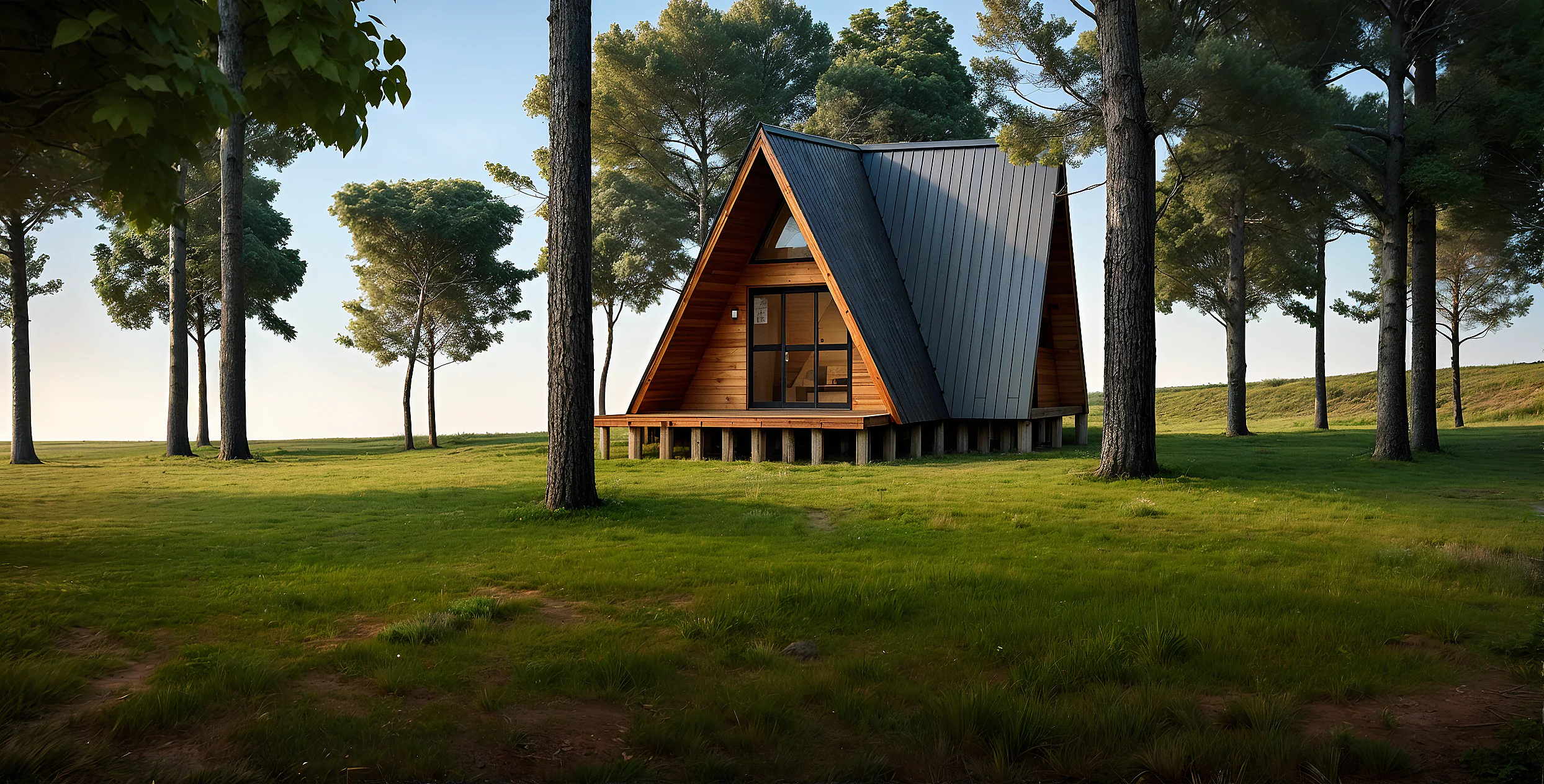 Master Plus – 65,20m² | Chalé A-Frame com mezanino, abertura lateral e amplo espaço interno.